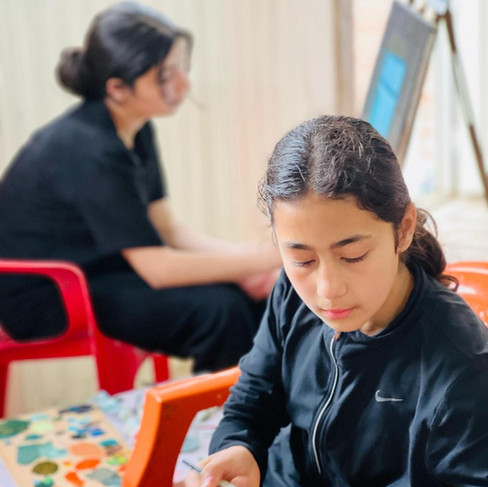 Here are some of our Syrian students creating their art pieces for the exhibition.