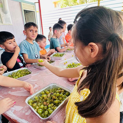 Syrian Kindergartners Eating Home Grown Grapes from our Farm Garden