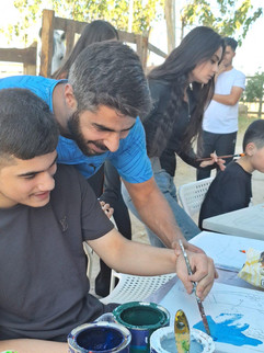 It was not easy, as each child has its own difficulty and limitation and although there is a caregiver, we needed to connect with the child and discover that which is locked inside him. I felt that the stables with all the nature, the sound of the birdsong, the flowers and trees was a safe place to begin and to start to explore the world of color, Some were able to connect with painting having been given the chance, for others it was a no go. This is a big learning curve for me and my students, all of whom agreed that it was a great experience which they would not have missed.